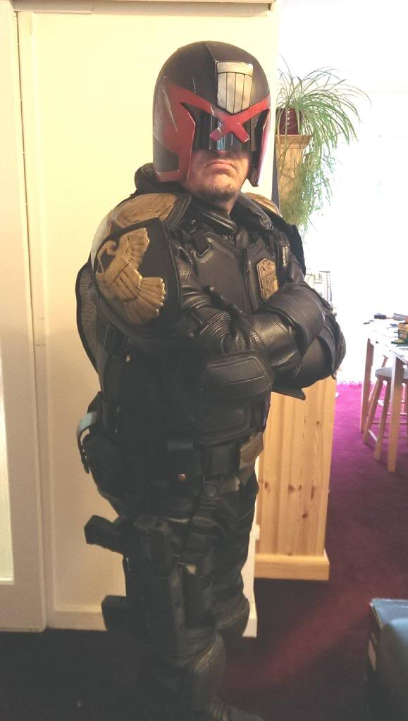 I am a fanfic writer too! Having written about Serenity/Firefly et al in the past. I’m a cosplayer (Judge Dredd) and here’s me in my costume. Look! It even has a Judge Gerard badge. Yes, i’m a nerd. Sue me.